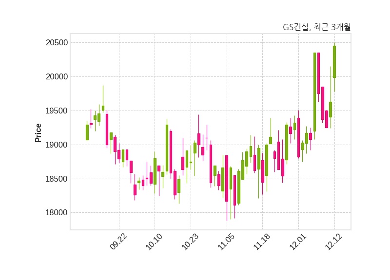 한편, GS건설의 14시 25분 현재주가는 20,450원으로 직전 거래일 대비 820원(+4.18%) 상승이며, 거래량은 706,930주이다.