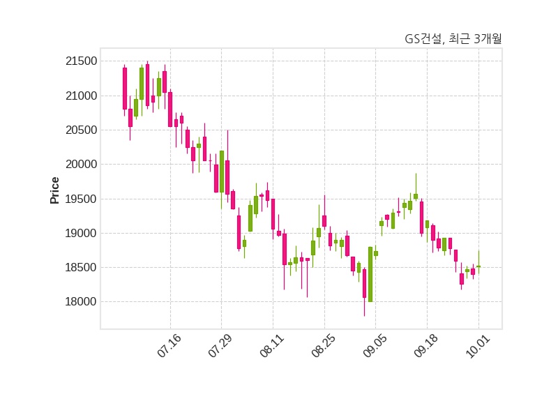 한편, GS건설의 13시 23분 현재주가는 18,520원으로 직전 거래일 대비 120원(+0.65%) 상승이며, 거래량은 176,926주이다.