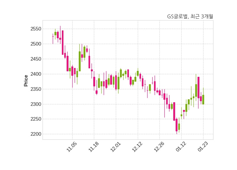 한편, GS글로벌은 장 마감 이후 해당 기업공시를 발표했으며 오늘 종가가 2,330원, 거래량은 434,391주로, 직전 거래일 대비 20원(+0.87%) 상승했다.