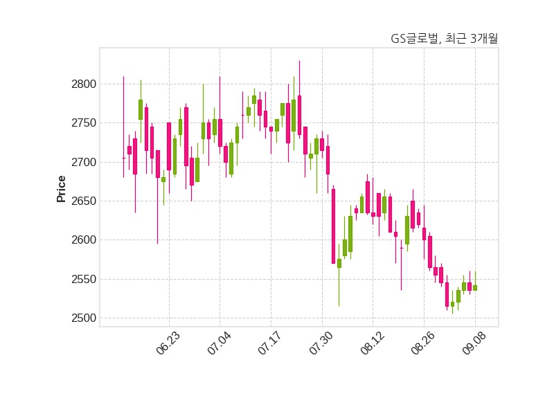 한편, GS글로벌의 14시 33분 현재주가는 2,542원으로 직전 거래일 대비 7원(+0.28%) 상승이며, 거래량은 228,516주이다.