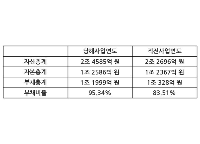 또한, 이번사업연도의 자산총계는 2조 4585억 원으로 직전사업연도 대비 8.32% 증가한 한편, 부채총계는 1조 1999억 원으로 16.18% 증가, 자본총계는 1조 2586억 원으로 1.77% 증가했다.