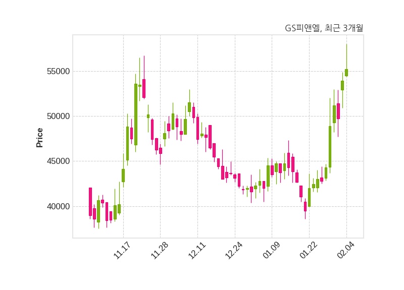 한편, GS피앤엘은 장 마감 이후 해당 기업공시를 발표했으며 오늘 종가가 55,200원, 거래량은 280,646주로, 직전 거래일 대비 1,300원(+2.41%) 상승했다.