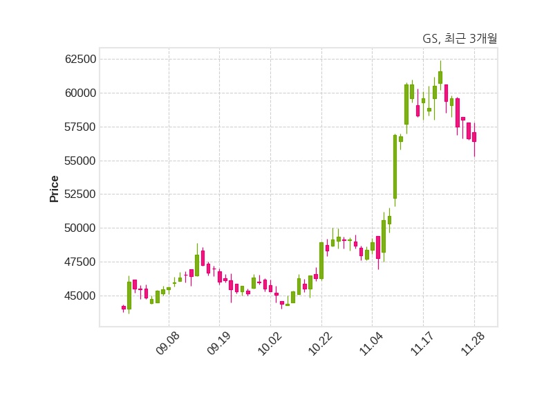 한편, GS은 장 마감 이후 해당 기업공시를 발표했으며 오늘 종가가 56,400원, 거래량은 257,139주로, 직전 거래일 대비 200원(-0.35%) 하락했다.