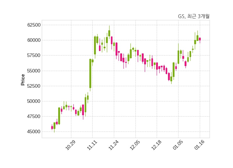 한편, GS의 11시 58분 현재주가는 60,000원으로 직전 거래일 대비 800원(-1.32%) 하락이며, 거래량은 73,590주이다.