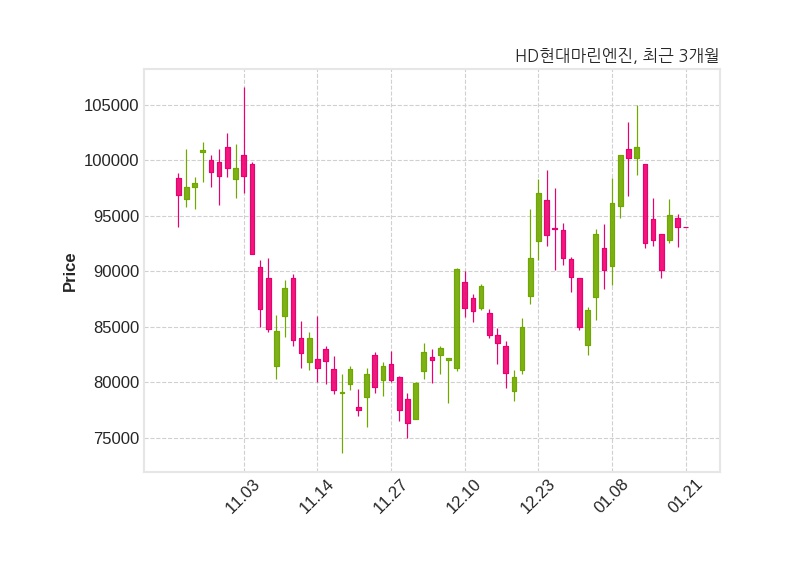 한편, HD현대마린엔진은 장 시작 전에 해당 기업공시를 발표했으며 전날 종가가 94,000원이었다.