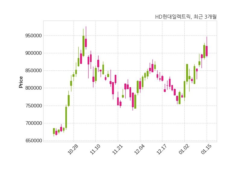 한편, HD현대일렉트릭은 장 마감 이후 해당 기업공시를 발표했으며 오늘 종가가 892,000원, 거래량은 274,698주로, 직전 거래일 대비 30,000원(-3.25%) 하락했다.