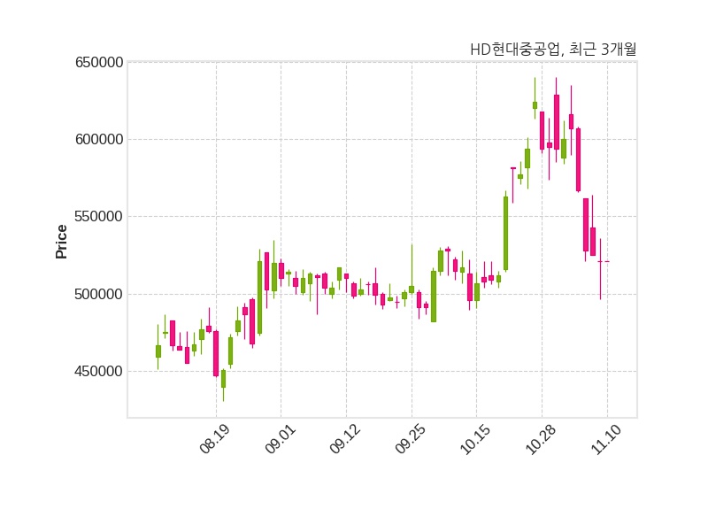 한편, HD현대중공업은 장 시작 전에 해당 기업공시를 발표했으며 전날 종가가 521,000원이었다.