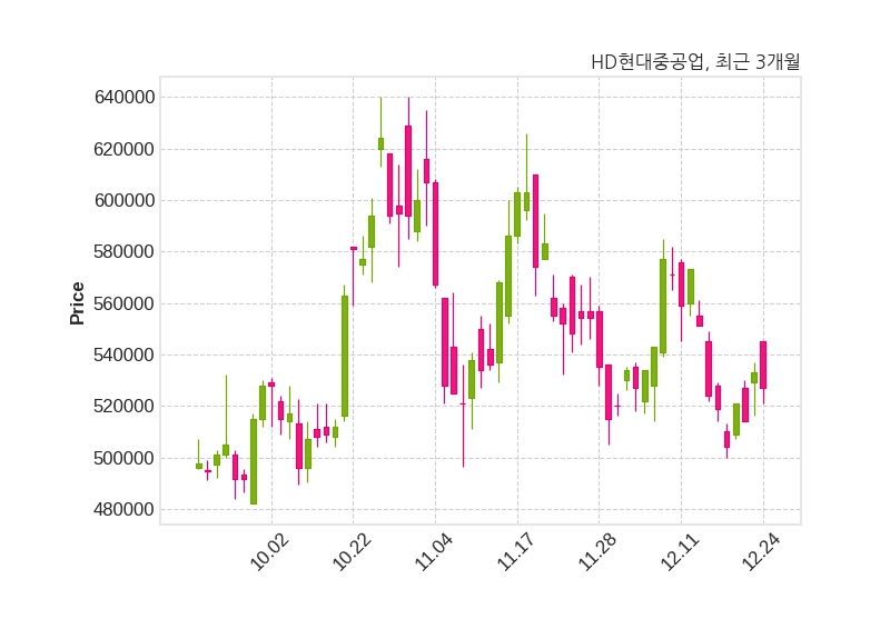한편, HD현대중공업의 10시 46분 현재주가는 527,000원으로 직전 거래일 대비 6,000원(-1.13%) 하락이며, 거래량은 71,809주이다.