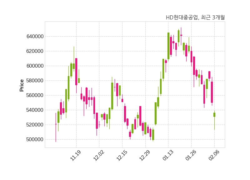 한편, HD현대중공업의 14시 39분 현재주가는 536,000원으로 직전 거래일 대비 14,000원(-2.55%) 하락이며, 거래량은 162,431주이다.