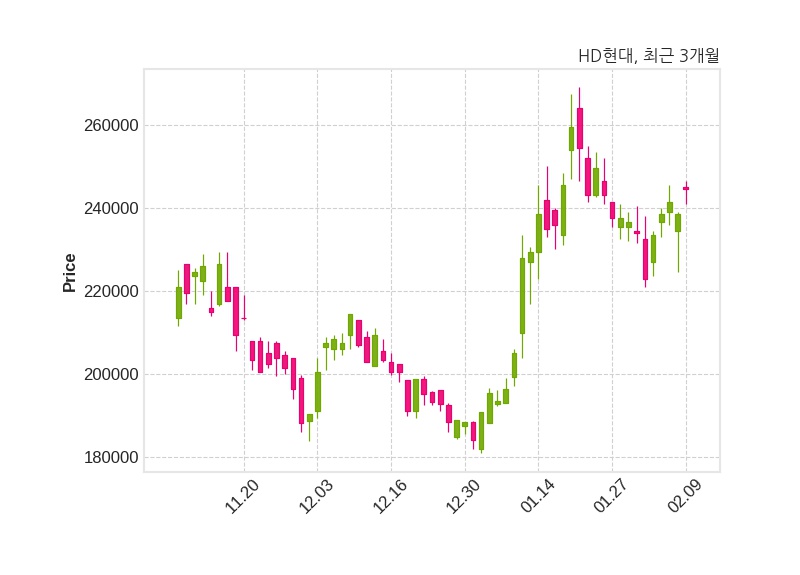 한편, HD현대의 13시 50분 현재주가는 244,500원으로 직전 거래일 대비 6,000원(+2.52%) 상승이며, 거래량은 101,198주이다.