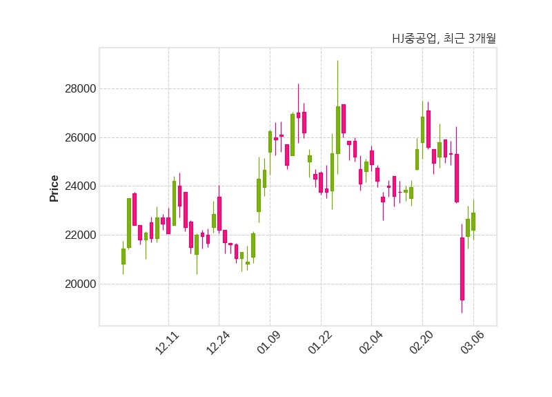 한편, HJ중공업의 14시 08분 현재주가는 22,900원으로 직전 거래일 대비 250원(+1.1%) 상승이며, 거래량은 900,513주이다.