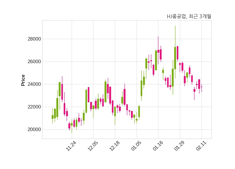 한편, HJ중공업의 09시 36분 현재주가는 23,750원으로 직전 거래일 대비 150원(+0.64%) 상승이며, 거래량은 93,922주이다.