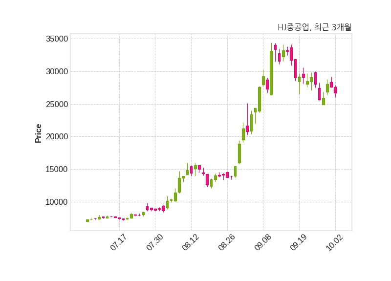 한편, HJ중공업은 장 마감 이후 해당 기업공시를 발표했으며 오늘 종가가 26,650원, 거래량은 4,107,665주로, 직전 거래일 대비 950원(-3.44%) 하락했다.