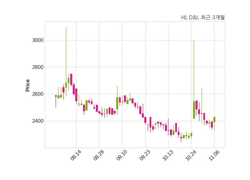 한편, HL D&I은 장 마감 이후 해당 기업공시를 발표했으며 오늘 종가가 2,430원, 거래량은 127,710주로, 직전 거래일 대비 75원(+3.18%) 상승했다.
