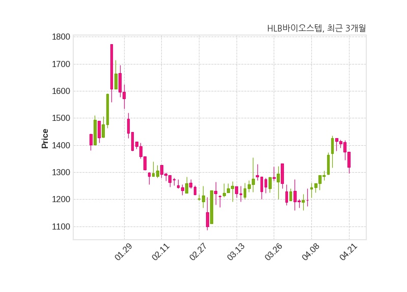 한편, HLB바이오스텝은 장 마감 이후 해당 기업공시를 발표했으며 오늘 종가가 1,319원, 거래량은 571,008주로, 직전 거래일 대비 56원(-4.07%) 하락했다.