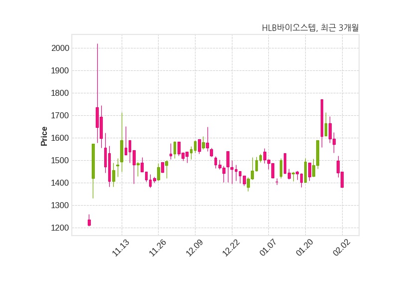 한편, HLB바이오스텝은 장 마감 이후 해당 기업공시를 발표했으며 오늘 종가가 1,381원, 거래량은 558,635주로, 직전 거래일 대비 64원(-4.43%) 하락했다.