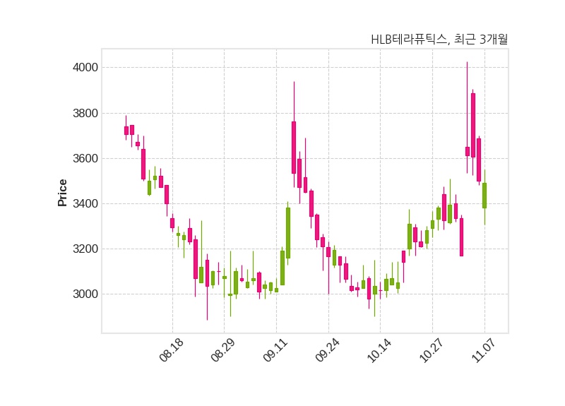 한편, HLB테라퓨틱스의 14시 45분 현재주가는 3,490원으로 직전 거래일 대비 10원(-0.29%) 하락이며, 거래량은 420,880주이다.