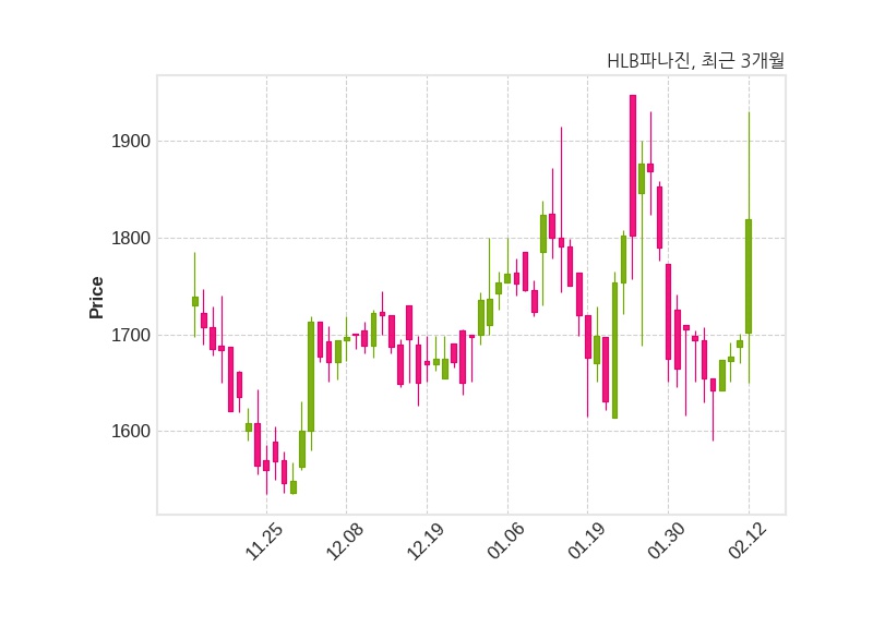 한편, HLB파나진은 장 마감 이후 해당 기업공시를 발표했으며 오늘 종가가 1,819원, 거래량은 1,037,586주로, 직전 거래일 대비 125원(+7.38%) 상승했다.