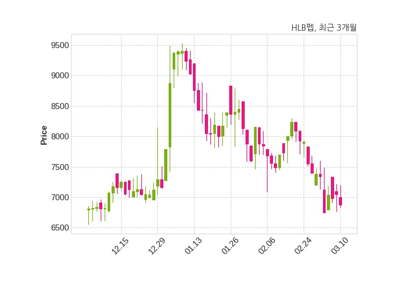 한편, HLB펩은 장 마감 이후 해당 기업공시를 발표했으며 오늘 종가가 6,880원, 거래량은 8,512주로, 직전 거래일 대비 170원(-2.41%) 하락했다.