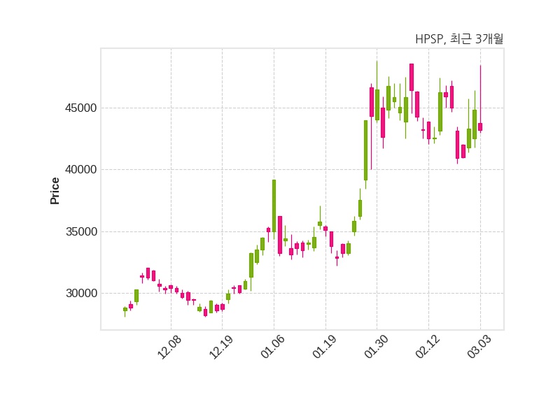 HPSP은 특별관계자 미래에셋자산운용의 지분율이 6.85%에서 5.1%로 변동했다고 03일 공시했다. 한편, HPSP은 장 마감 이후 해당 기업공시를 발표했으며 오늘 종가가 43,200원, 거래량은 7,156,287주로, 직전 거래일 대비 1,650원(-3.68%) 하락했다.