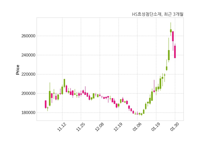 한편, HS효성첨단소재는 장 마감 이후 해당 기업공시를 발표했으며 오늘 종가가 237,000원, 거래량은 44,521주로, 직전 거래일 대비 17,500원(-6.88%) 하락했다.