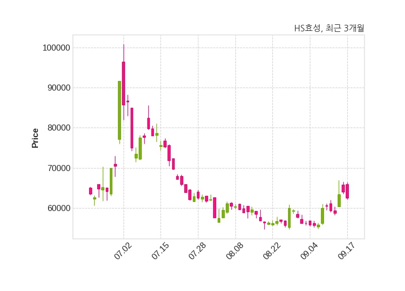 HS효성은 특별관계자 조현상의 지분율이 57.35%에서 57.68%로 변동했다고 17일 공시했다. 한편, HS효성은 장 마감 이후 해당 기업공시를 발표했으며 오늘 종가가 62,500원, 거래량은 21,358주로, 직전 거래일 대비 1,500원(-2.34%) 하락했다.