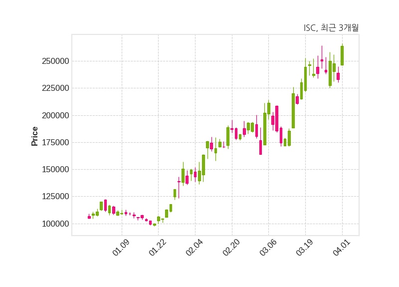 ISC은 특별관계자 국민연금공단의 지분율이 4.1%에서 6.16%로 변동했다고 01일 공시했다. 한편, ISC은 장 마감 이후 해당 기업공시를 발표했으며 오늘 종가가 264,000원, 거래량은 247,902주로, 직전 거래일 대비 31,000원(+13.3%) 상승했다.