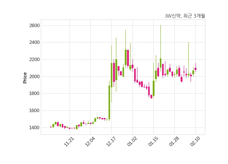 한편, JW신약은 장 마감 이후 해당 기업공시를 발표했으며 오늘 종가가 2,080원, 거래량은 1,451,163주로, 직전 거래일 대비 10원(+0.48%) 상승했다.