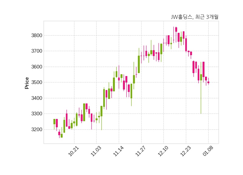 JW홀딩스는 특별관계자 이경하의 지분율이 52.2%에서 52.17%로 변동했다고 08일 공시했다. 한편, JW홀딩스의 09시 49분 현재주가는 3,497원으로 직전 거래일 대비 18원(-0.51%) 하락이며, 거래량은 18,024주이다.