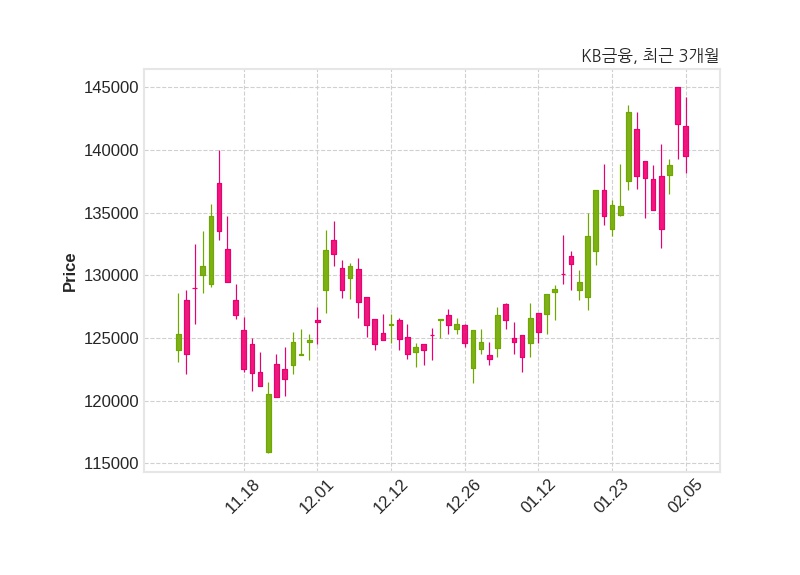 한편, KB금융은 장 마감 이후 해당 기업공시를 발표했으며 오늘 종가가 139,500원, 거래량은 1,036,611주로, 직전 거래일 대비 2,600원(-1.83%) 하락했다.