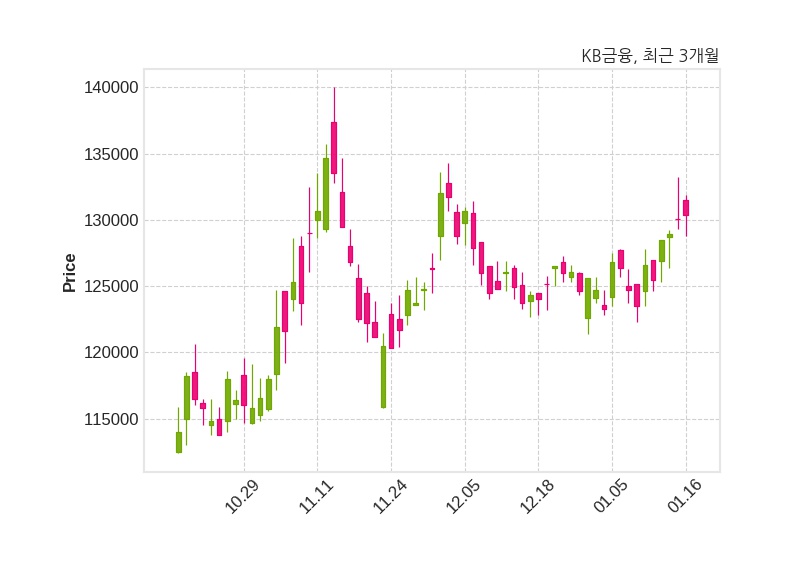 한편, KB금융의 14시 13분 현재주가는 130,400원으로 직전 거래일 대비 300원(+0.23%) 상승이며, 거래량은 514,618주이다.