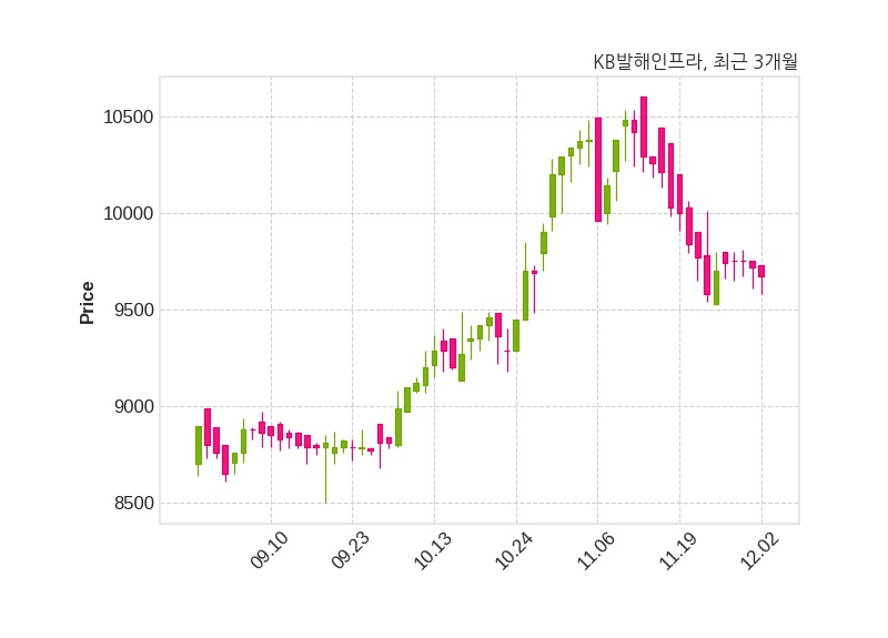KB발해인프라는 특별관계자 미래에셋자산운용의 지분율이 9.94%에서 8.77%로 변동했다고 02일 공시했다. 한편, KB발해인프라는 장 마감 이후 해당 기업공시를 발표했으며 오늘 종가가 9,670원, 거래량은 202,030주로, 직전 거래일 대비 50원(-0.51%) 하락했다.