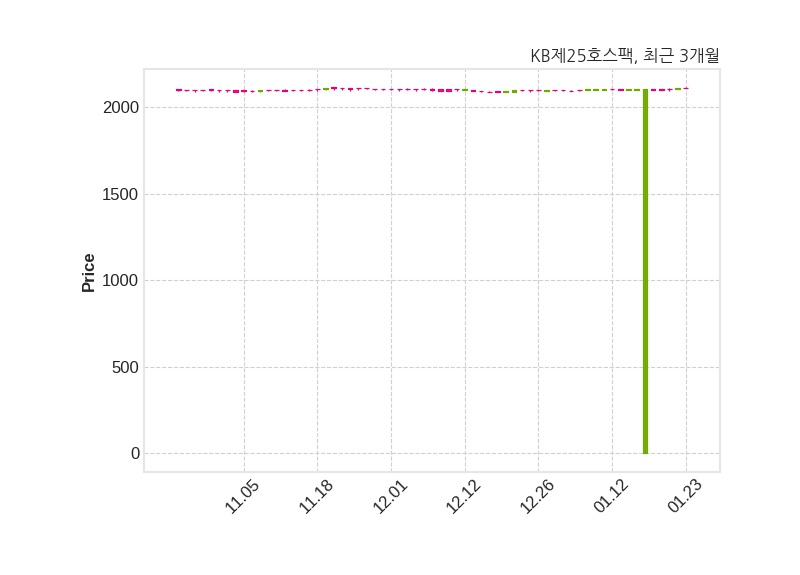 KB제25호스팩은 특별관계자 하우자산운용의 지분율이 5.58%에서 4.92%로 변동했다고 23일 공시했다. 한편, KB제25호스팩은 장 마감 이후 해당 기업공시를 발표했으며 오늘 종가가 2,110원, 거래량은 32,139주로, 직전 거래일 대비 변동이없다.