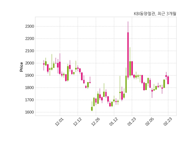 한편, KBI동양철관은 장 마감 이후 해당 기업공시를 발표했으며 오늘 종가가 1,831원, 거래량은 2,114,252주로, 직전 거래일 대비 59원(-3.12%) 하락했다.