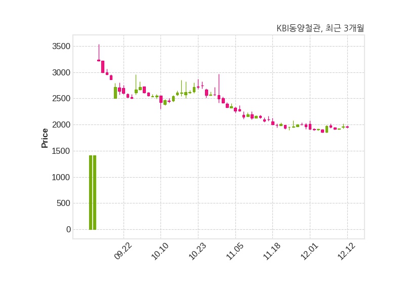 한편, KBI동양철관은 장 마감 이후 해당 기업공시를 발표했으며 오늘 종가가 1,957원, 거래량은 790,625주로, 직전 거래일 대비 3원(-0.15%) 하락했다.