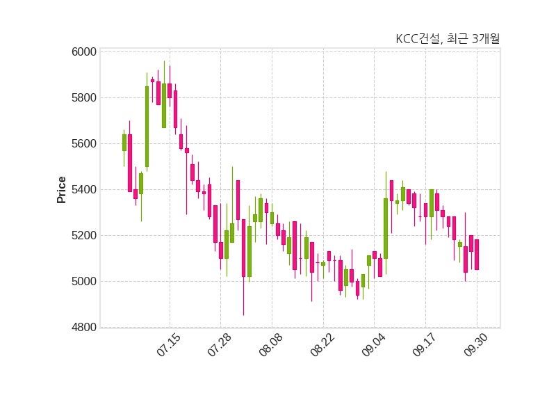 한편, KCC건설은 장 마감 이후 해당 기업공시를 발표했으며 오늘 종가가 5,050원, 거래량은 9,054주로, 직전 거래일 대비 80원(-1.56%) 하락했다.