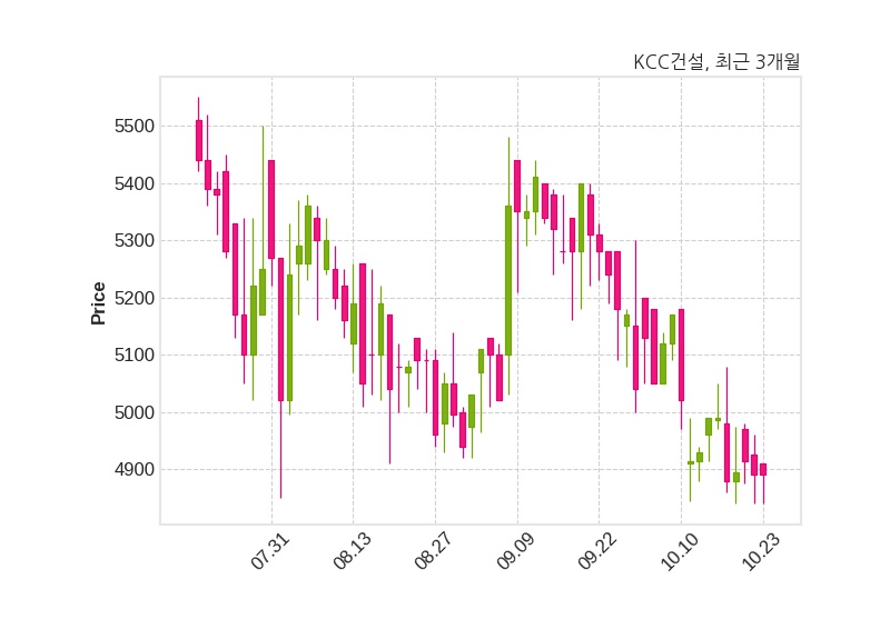 한편, KCC건설은 장 마감 이후 해당 기업공시를 발표했으며 오늘 종가가 4,890원, 거래량은 6,516주로, 직전 거래일 대비 변동이없다.