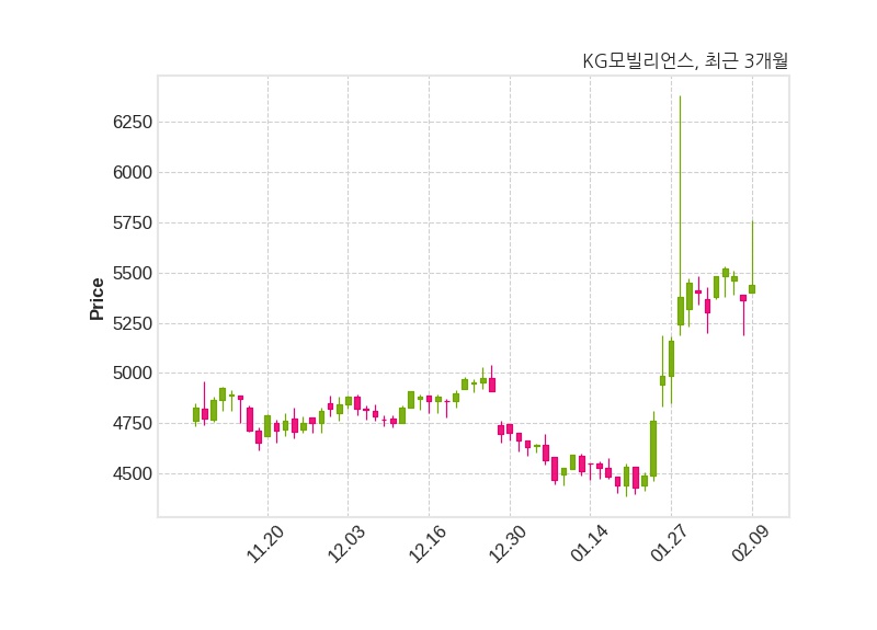 한편, KG모빌리언스의 14시 13분 현재주가는 5,440원으로 직전 거래일 대비 80원(+1.49%) 상승이며, 거래량은 492,766주이다.