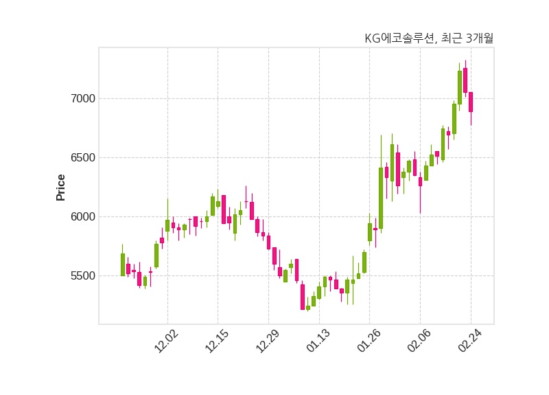 한편, KG에코솔루션은 장 마감 이후 해당 기업공시를 발표했으며 오늘 종가가 6,890원, 거래량은 263,902주로, 직전 거래일 대비 160원(-2.27%) 하락했다.