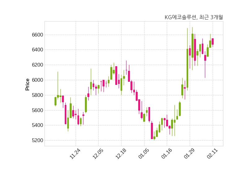 한편, KG에코솔루션의 11시 22분 현재주가는 6,470원으로 직전 거래일 대비 50원(-0.77%) 하락이며, 거래량은 59,800주이다.