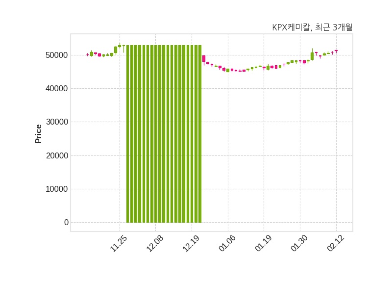 한편, KPX케미칼은 장 마감 이후 해당 기업공시를 발표했으며 오늘 종가가 51,300원, 거래량은 5,702주로, 직전 거래일 대비 400원(+0.79%) 상승했다.