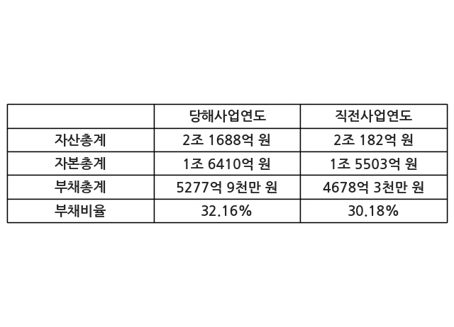 또한, 이번사업연도의 자산총계는 2조 1688억 원으로 직전사업연도 대비 7.46% 증가한 한편, 부채총계는 5277억 9천만 원으로 12.82% 증가, 자본총계는 1조 6410억 원으로 5.85% 증가했다.