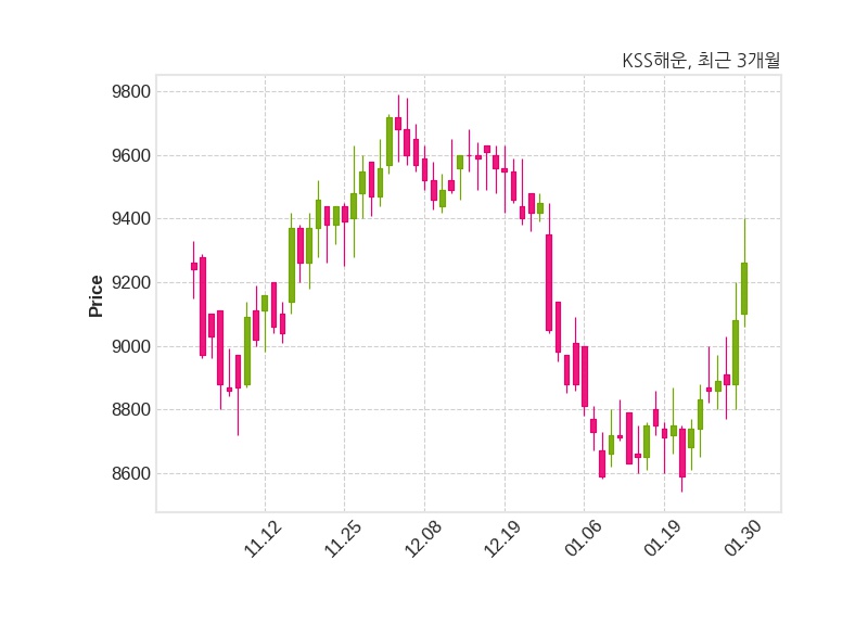 한편, KSS해운의 10시 07분 현재주가는 9,260원으로 직전 거래일 대비 180원(+1.98%) 상승이며, 거래량은 98,301주이다.