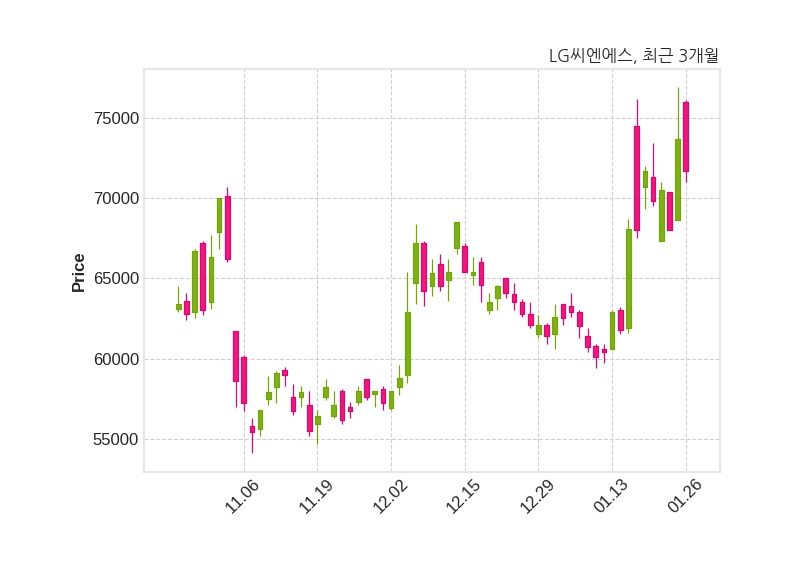 한편, LG씨엔에스는 장 마감 이후 해당 기업공시를 발표했으며 오늘 종가가 71,700원, 거래량은 2,078,576주로, 직전 거래일 대비 2,000원(-2.71%) 하락했다.
