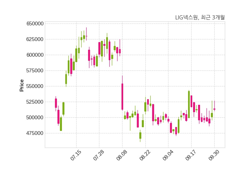 한편, LIG넥스원의 15시 25분 현재주가는 513,000원으로 직전 거래일 대비 6,000원(+1.18%) 상승이며, 거래량은 138,326주이다.