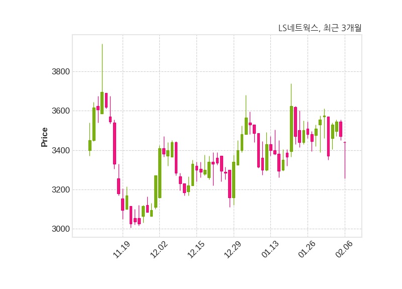 한편, LS네트웍스는 장 마감 이후 해당 기업공시를 발표했으며 오늘 종가가 3,440원, 거래량은 307,600주로, 직전 거래일 대비 30원(-0.86%) 하락했다.