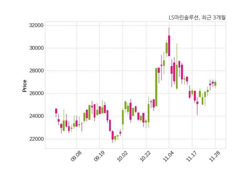 한편, LS마린솔루션은 장 마감 이후 해당 기업공시를 발표했으며 오늘 종가가 27,000원, 거래량은 164,273주로, 직전 거래일 대비 100원(+0.37%) 상승했다.