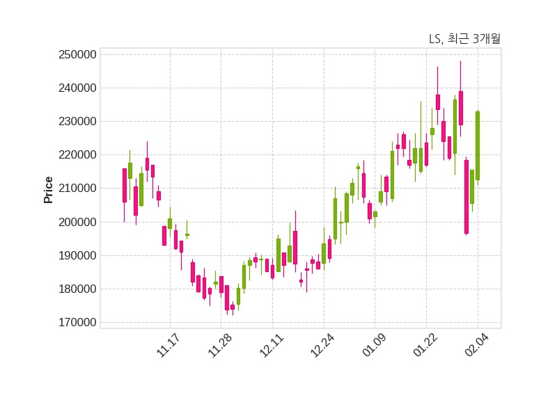 한편, LS은 장 마감 이후 해당 기업공시를 발표했으며 오늘 종가가 233,000원, 거래량은 302,466주로, 직전 거래일 대비 17,500원(+8.12%) 상승했다.