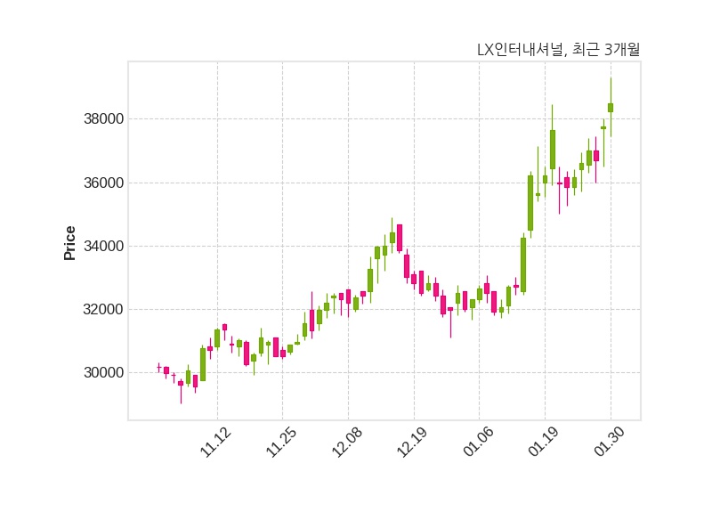 한편, LX인터내셔널의 15시 28분 현재주가는 38,500원으로 직전 거래일 대비 750원(+1.99%) 상승이며, 거래량은 193,071주이다.