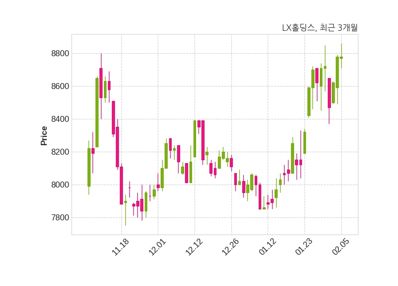 한편, LX홀딩스의 14시 06분 현재주가는 8,780원으로 직전 거래일 대비 변동없으며, 거래량은 150,175주이다.